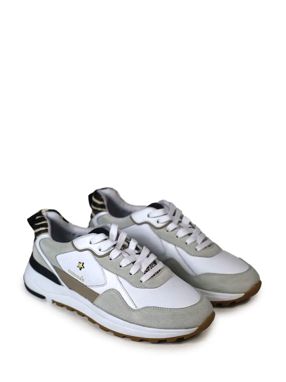 Ténis Cubanas em Pele Branca e Detalhes Zebra