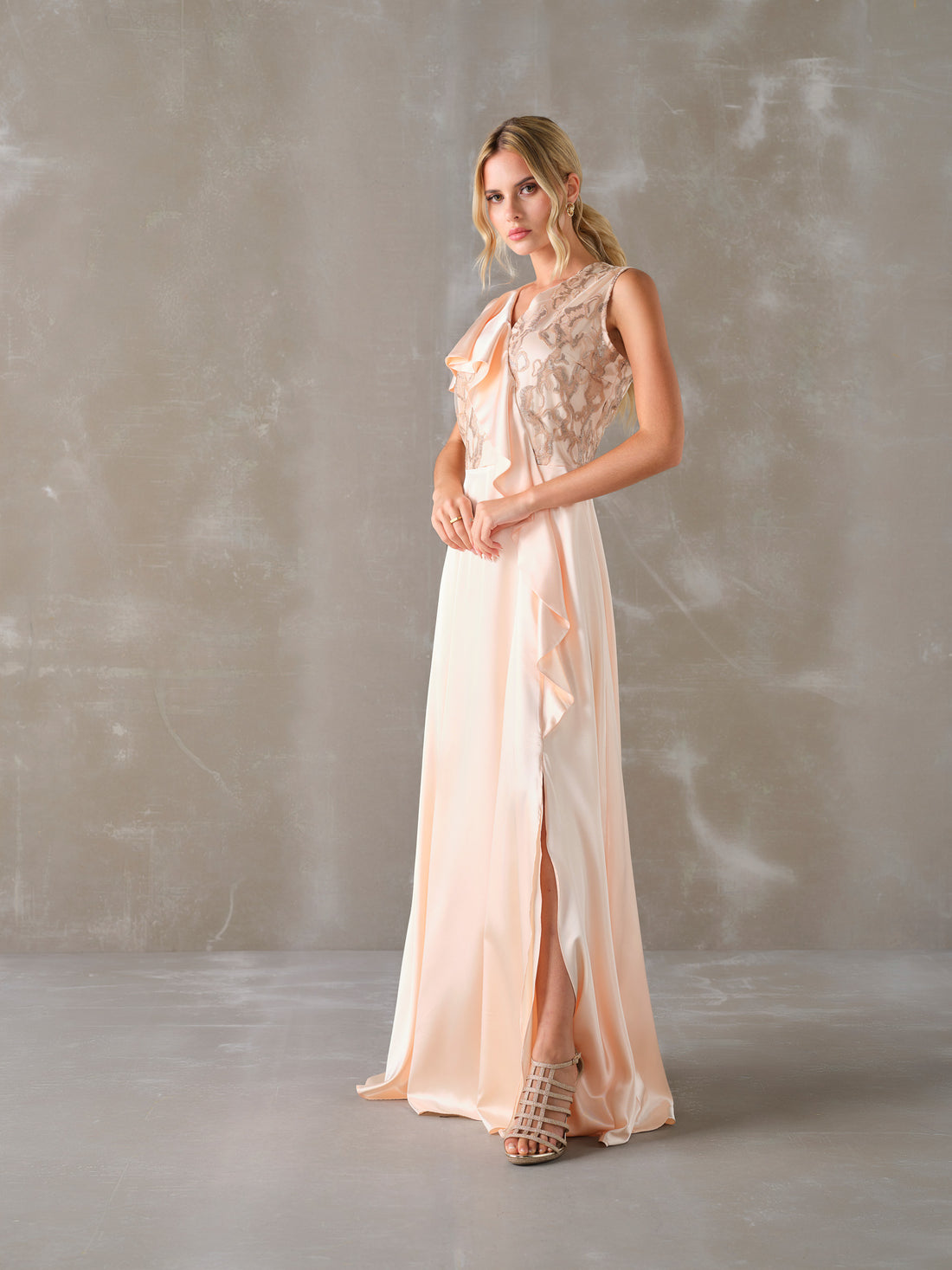 Vestido "Encanto do Entardecer" em Cetim com Renda