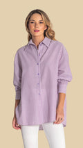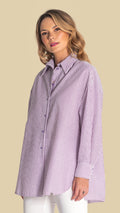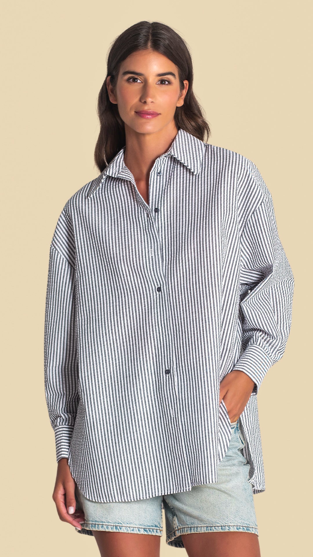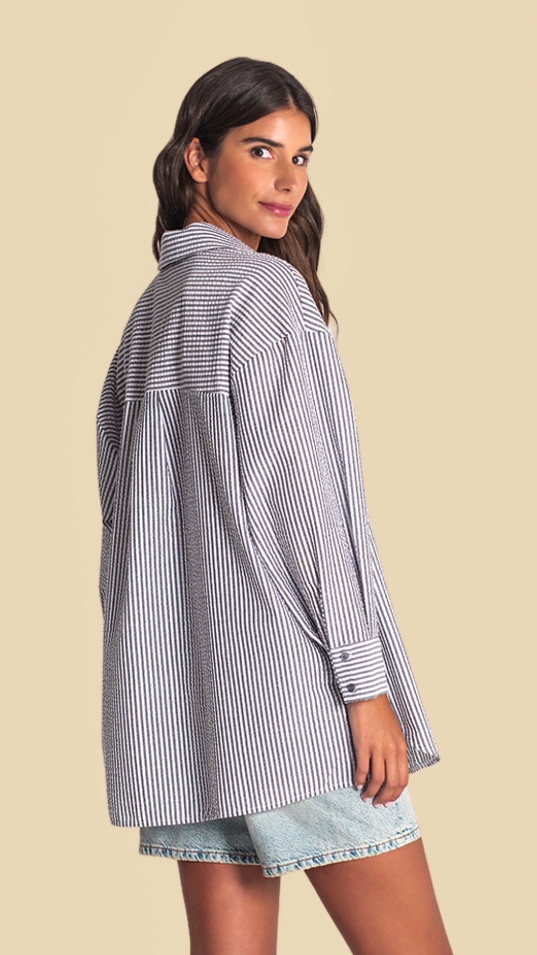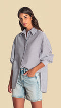 Camisa oversized riscas da Ruga. Aperta na frente com botões.