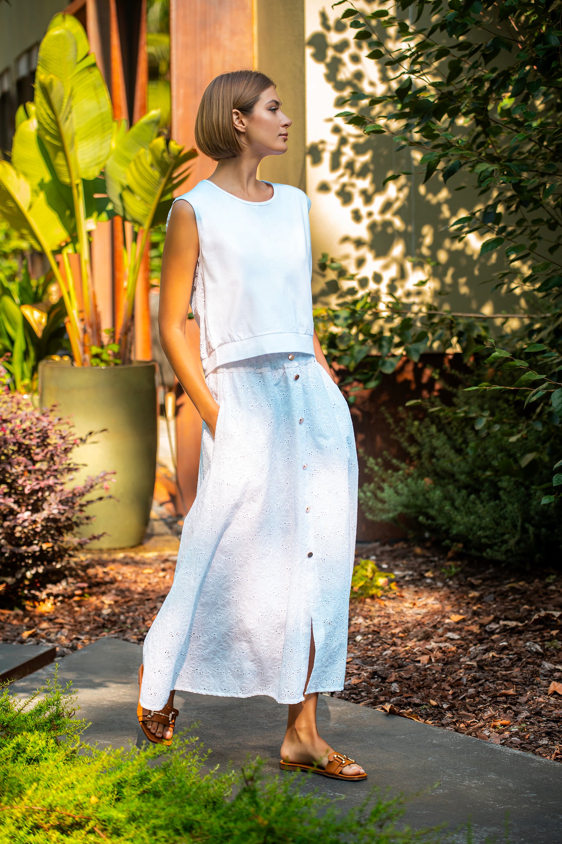 Saia em Algodão Bordado – Movimento e Elegância Natural