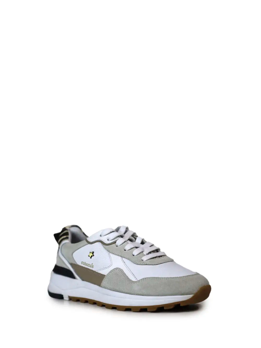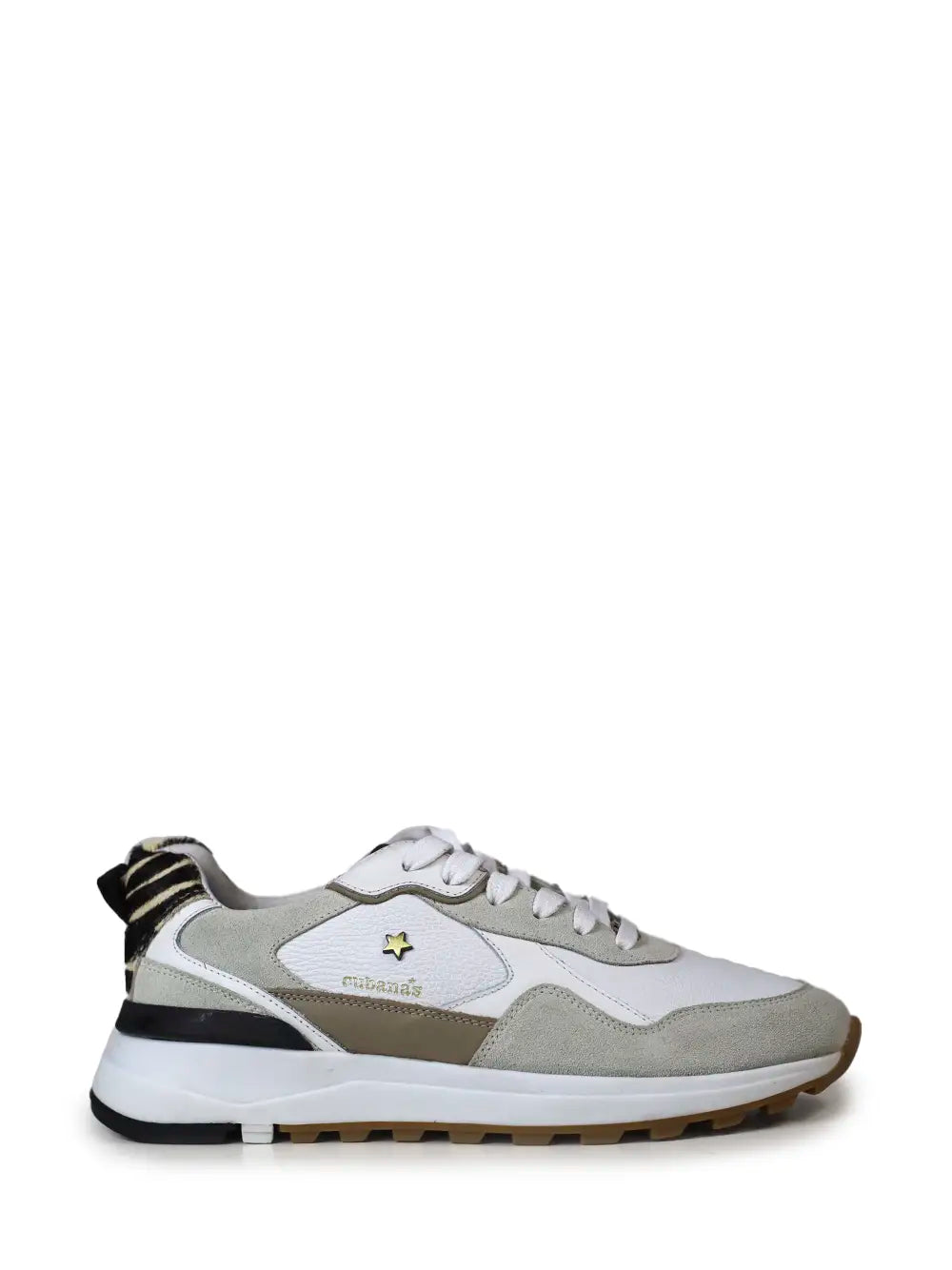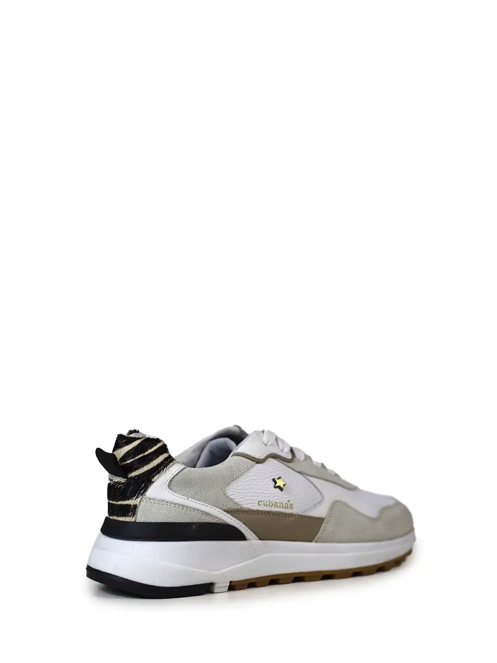 Ténis Cubanas em Pele Branca e Detalhes Zebra